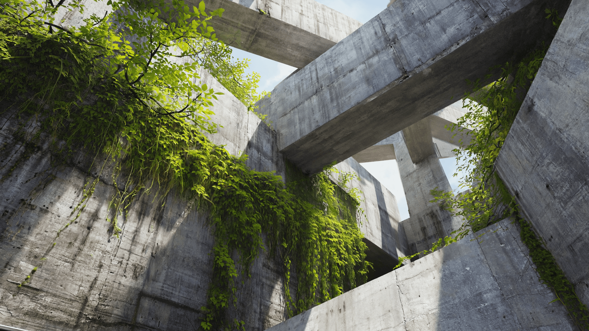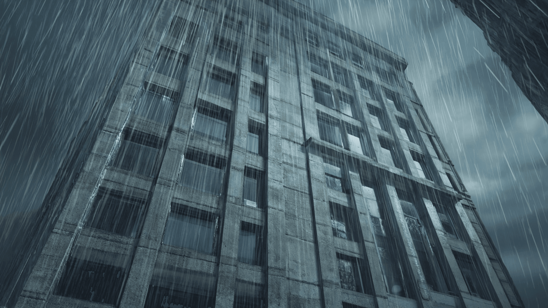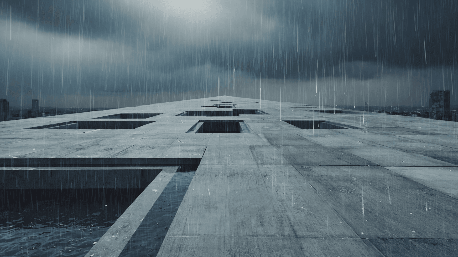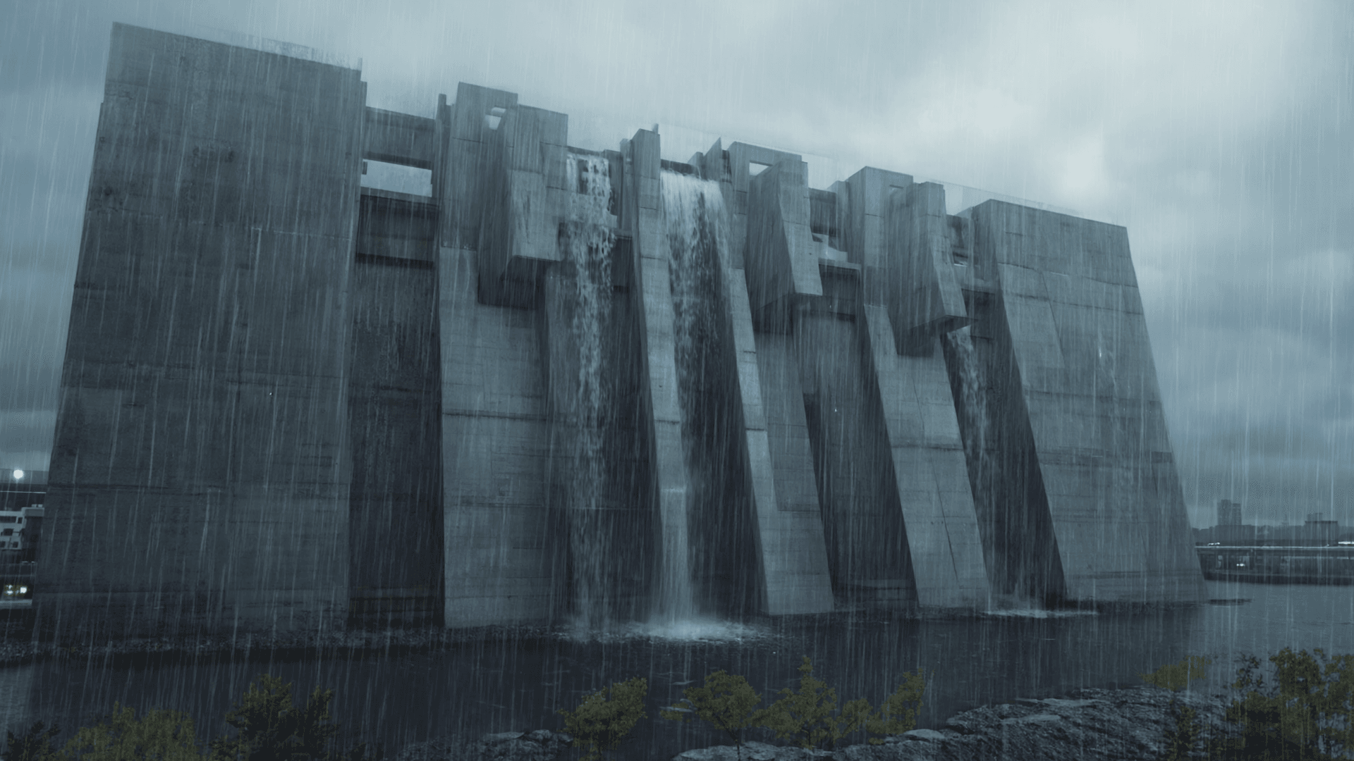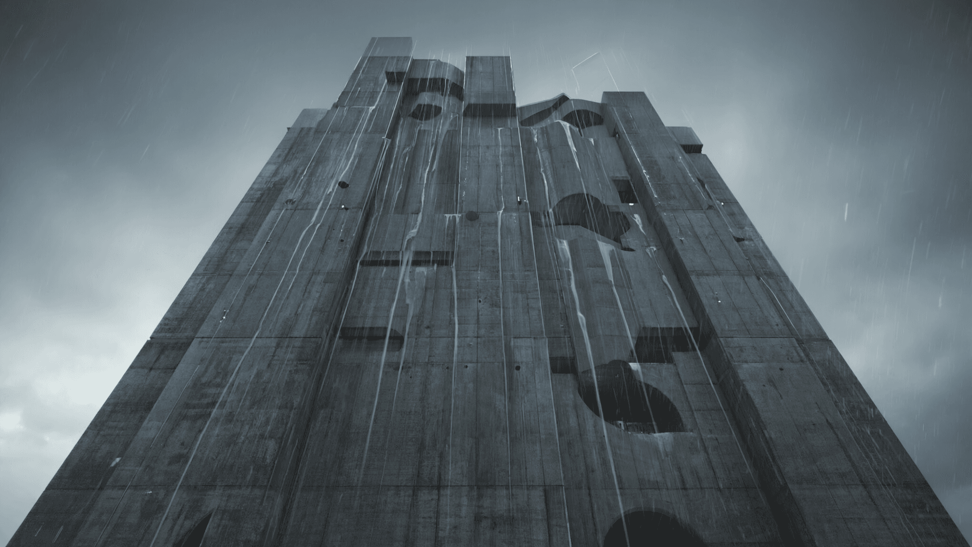 Rain cascades over monolithic surfaces. Concrete becomes alive, touched by time, weather, and weight.