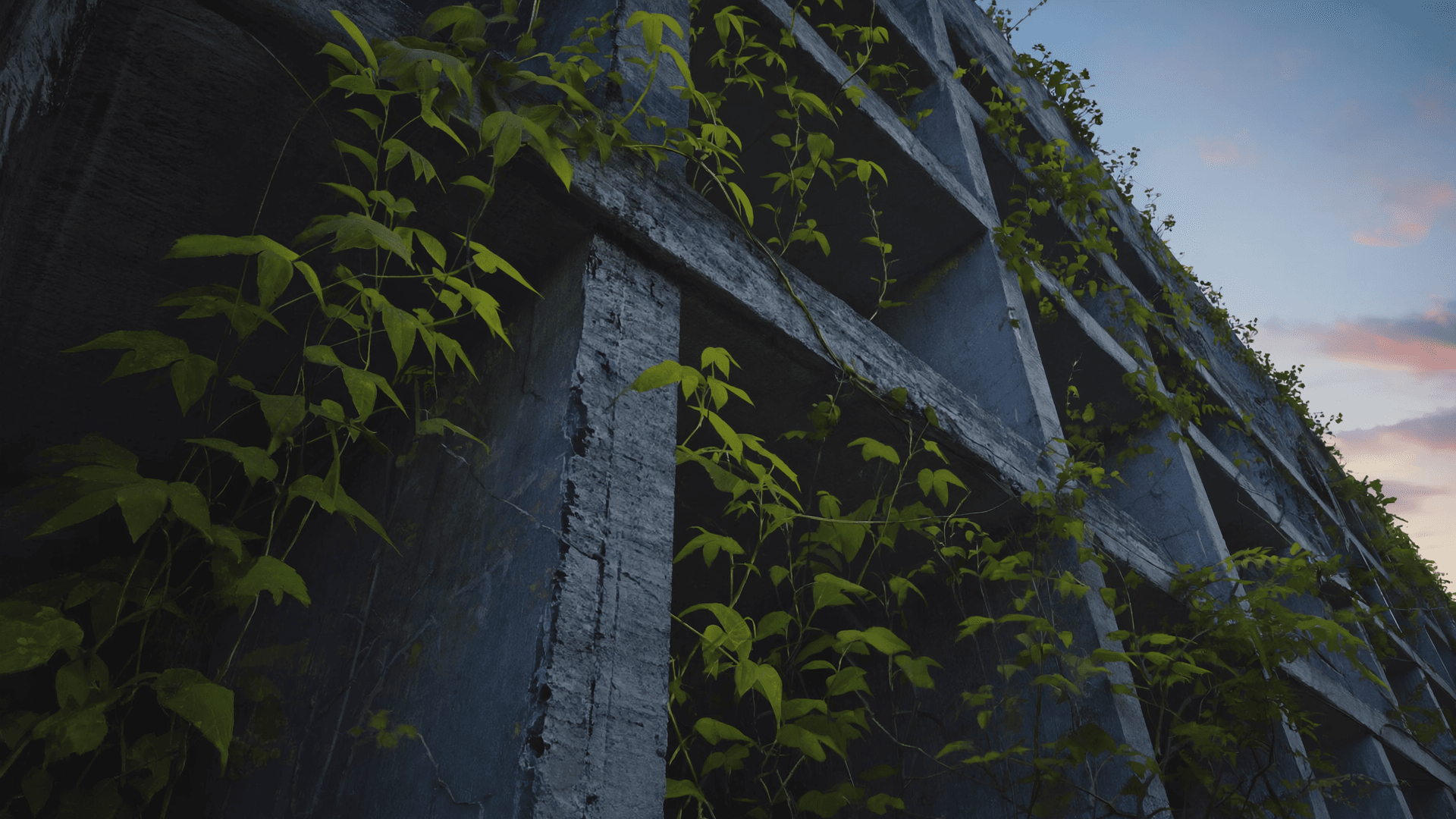Vines and moss take back the walls. Nature reshapes what man once built — gently, persistently, poetically.